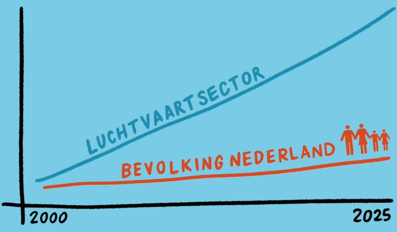 Urgenda roept het kabinet op om de luchtvaartsector haar proportionele bijdrage te laten leveren aan het oplossen van de klimaatcrisis. Essentieel daarin is het terugdringen van de toegenomen vervuiling, CO2-uitstoot en overlast die de Nederlandse luchtvaart veroorzaakt doordat ze de afgelopen 25 jaar vier keer zo hard gegroeid is als de Nederlandse bevolking. Dat terugdringen kan alleen door krimp.